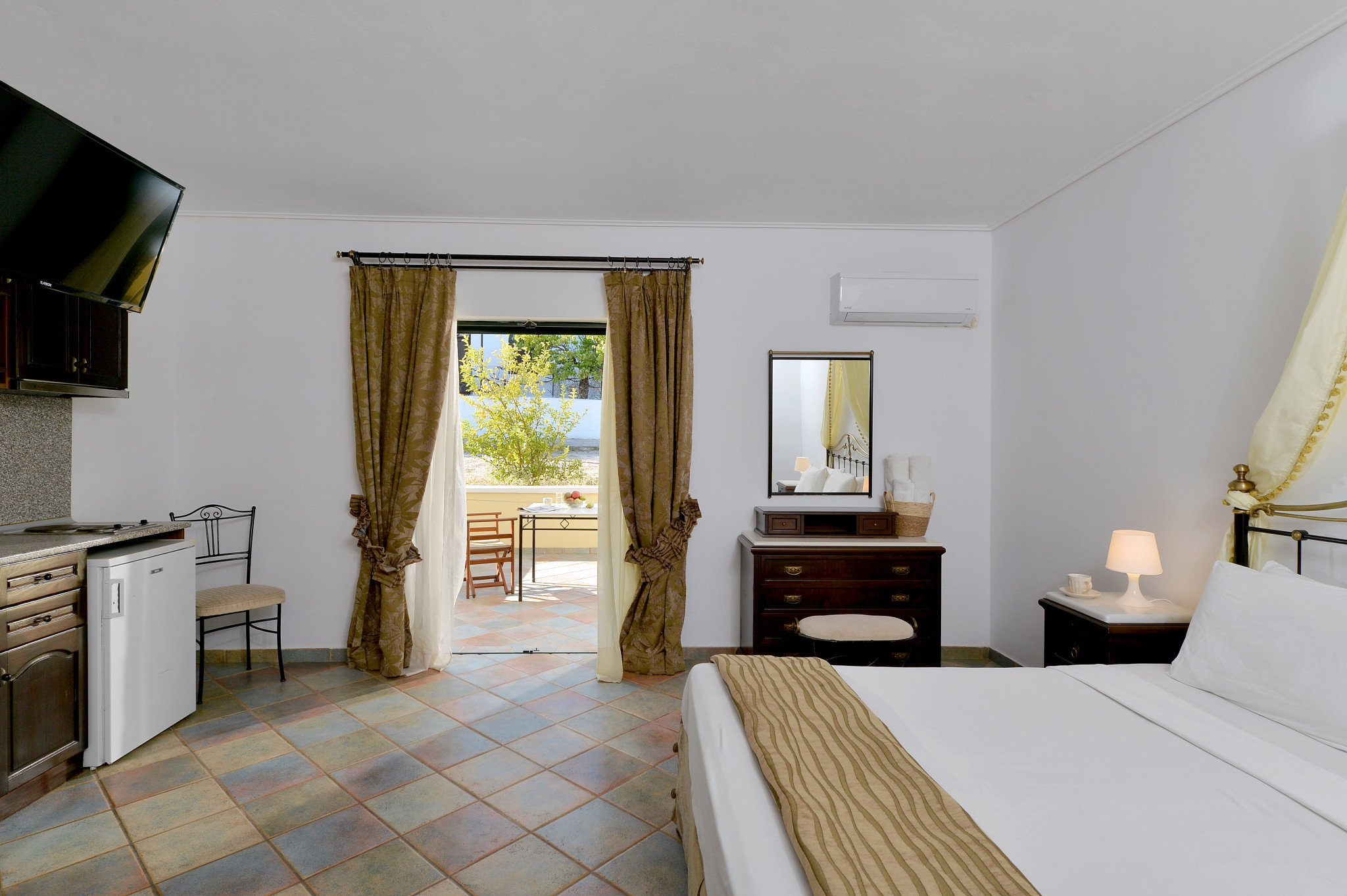 The Sea and Mountain View Double Superior rooms contain their own private Jacuzzi. Guests can choose from a panoramic vista of the sea or the stunning views of Agistri’s famous pine covered hills with its continuous aroma of wild herbs and flowers.